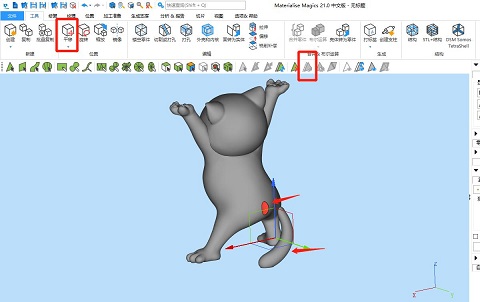 為了提高打印效果,往往我們需要對復(fù)雜模型進行分割變?yōu)楹唵文P蛠泶蛴?,再進行拼裝。要對模型分割的話,推薦使用Magics來執(zhí)行工作,這個軟件有數(shù)種切割方式,我們以最近很火的托舉貓模型為例子,介紹下其中常用的3種,內(nèi)容較多,將分為2期內(nèi)容說明。