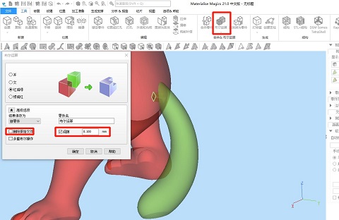 ③再通過“分離標記”功能將標記部位分離,這樣我們將得到2個帶有接口破面的模型,選中其中一個模型,移動指定距離遠方便后續(xù)操作。