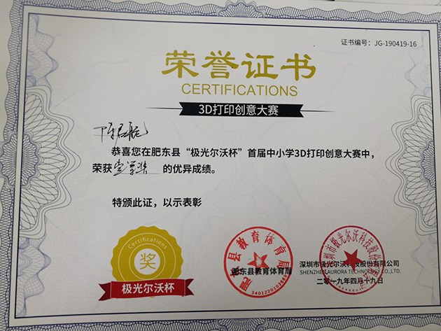 由深圳市極光爾沃科技股份有限公司和肥東縣教育體育局共同頒發的證書